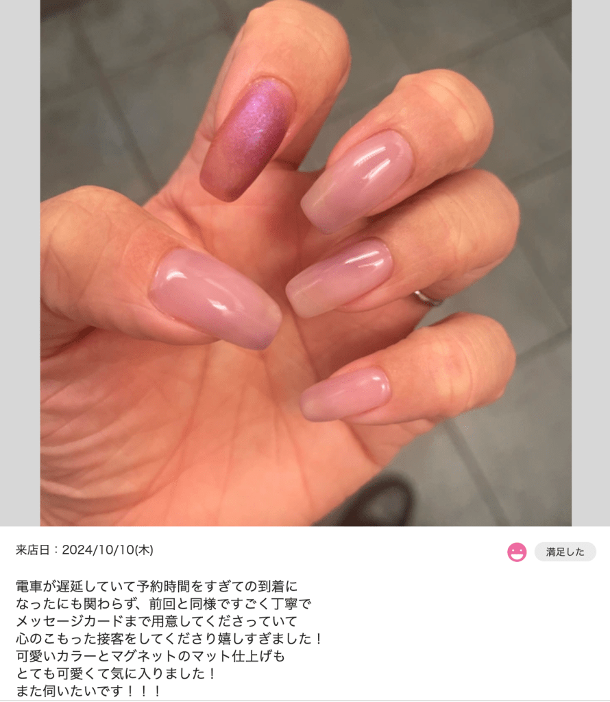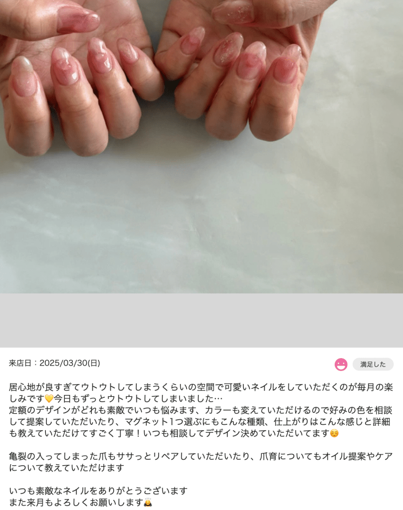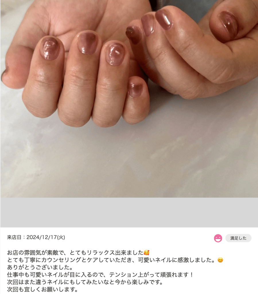 「ナチュラルで手になじむ色に仕上げてくれて安心でした」
